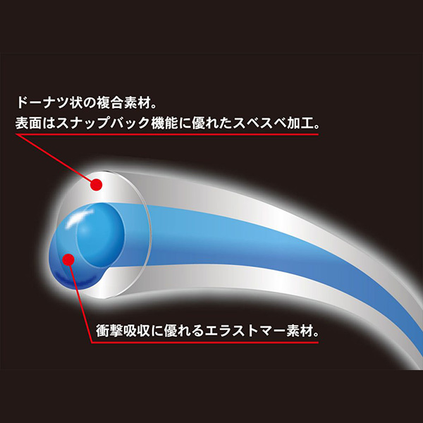 | 特徴 | 2種類以上の素材を複合させたコンポジットストリングスシリーズ。1本の中にハイブリッド機能を持たせ、それぞれの素材の特徴を引き出しデメリットを軽減させた次世代ストリングス。 エラストマー樹脂を搭載したコンポジットストリングス。ハードヒット時はポリのようにボールを潰せ、ソフトタッチ時には反応しホールドして飛ばしてくれる新テクノロジーストリングス。 |