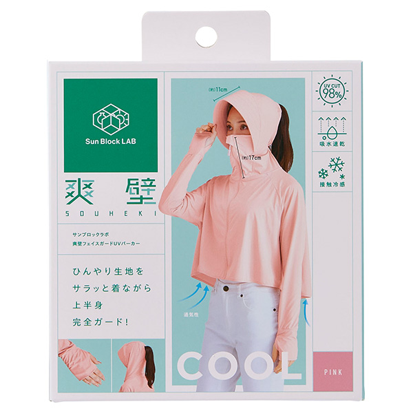 | 特徴 | 絶対日焼けしたくない人に。 ひんやり生地をサラッと着ながら上半身完全ガード! 多機能な機能性生地で上半身を日差しから完全ガードします。 両手が塞がってしまうようなアクティブな場面でも1枚着れば、顔から上半身の日焼け・暑さ対策が叶う。 お手軽なのに高機能なアイテムです。 肌に触れた瞬間にひんやりとした感覚を与える接触冷感素材を使用。 着たら涼しく感じる嬉しい機能。 汗を素早く吸収しすぐに乾くので暑い日でも蒸れずに快適。運動や散歩、旅行中でもさらっと軽い着心地が続きます。汗による不快感やベタつきを気にせずいつでも快適な肌触りをキープできます。 手の甲までしっかり日焼け対策できる親指ホール付き。 大きなツバと顎まで上がるフロントジッパーで顔全体を守る! フードには髪を通せるホール付でロングヘアでも髪を気にせず自由に着用が可能です。 ファスナー引き手にひも付で着脱カンタン。 夏にぴったりな機能性生地・爽璧とは紫外線カット、接触冷感、吸水速乾が備わった夏に1枚あれば便利な機能性生地「爽璧」。 日差しをガードして機能的なのに軽くて着心地がいい。 |