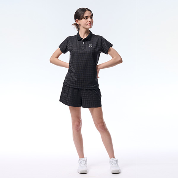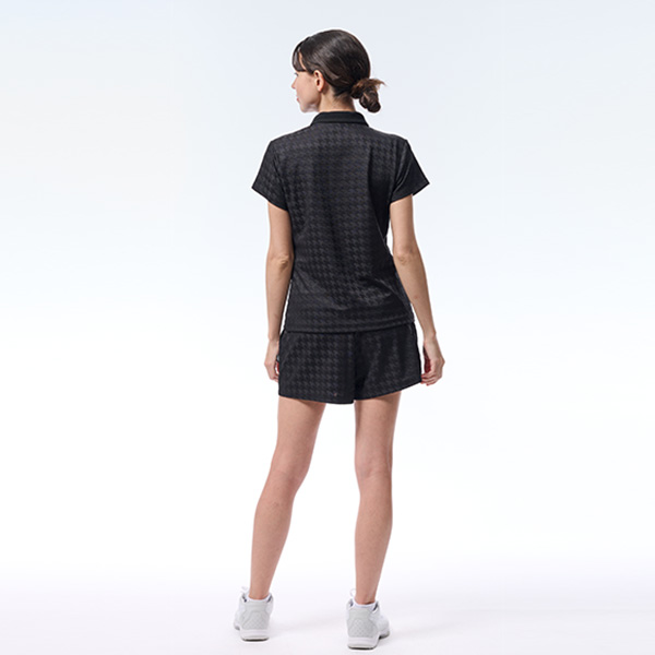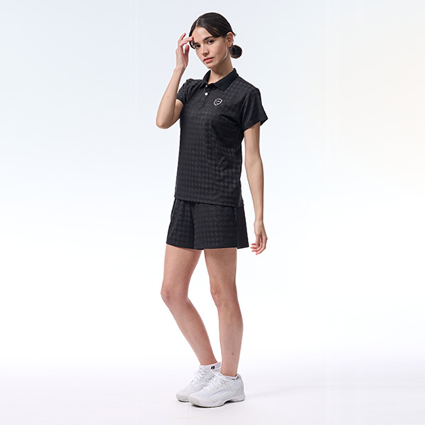 | 特徴 | 千鳥柄のジャガードを使用したポロシャツ。 同色の織り柄の入った襟とムースベルベットを使用した秋冬らしいワッペンがポイント。 |