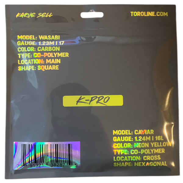 | 特徴 | K-PROは、WASABI(ワサビ)とCAVIAR(キャビア)のハイブリッド商品です。 この独自の組合わせは、トロラインのアンバサダーである「Karue Sell(カルエ・セル)プロ選手」との企画によって共同開発致しました。 ※中級プレイヤー以上の方にオススメの商品です。 縦のメインストリングには、WASABIで設計しています。最高のスピン性能とコントロール性能を実現するために設計されたスクエアシェイプのストリングです。 横のストリングにはCAVIARを採用していいます。卓越した安定性と最高の精度を実現する六角形のストリングです。 この2つのストリングの融合が『最大限のスピンとコントロールを実現するように設計されたスクエア型の共重合ストリング』です。 ※本商品は「K-POPと比較すると、K-PROはやや硬めの反発力」があり、コントロール性を重視した商品になります。 現在世界のツアーに参戦する「Karue Sell(カルエ・セル)プロ選手」と開発した「K-PRO」を是非お試し下さい。 |