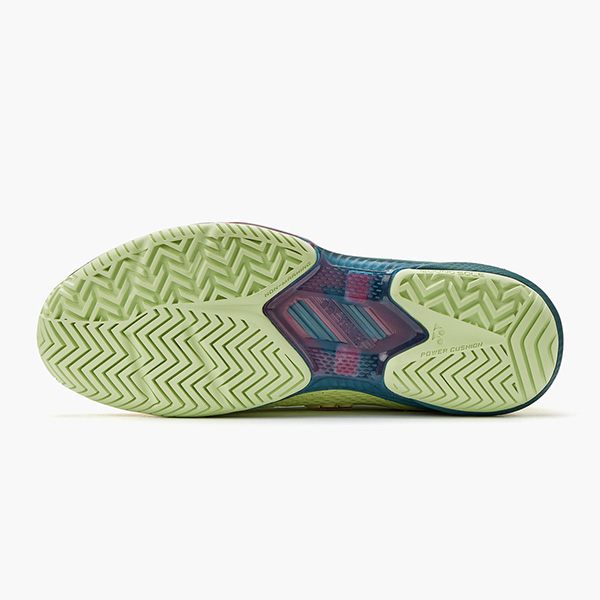 | テクノロジー | 【パワークッションプラス】 弊社独自の衝撃吸収性と反発性を併せ持つ衝撃吸収素材パワークッション。 パワークッションに反発性の高い特殊樹脂を添加し、格子状に+型の溝を最適な間隔と深さで配置した新構造を採用した「パワークッションプラス」は、従来の軽量性を保ちつつ、衝撃吸収性を28%※1、反発性を62%※2向上させ(一般的な衝撃吸収材【EVA】との比較)、12mの高さから落とした生卵が、割れずに6m以上跳ね返る※3新衝撃吸収反発素材です。 ※1 (一財)日本車両検査協会にて測定 ※2 (一財)ボーケン品質評価機構調べ JIS法準用 ※3 ヨネックス株調べ 【デュラブルスキン】 シューズの安定性を高める優れた保形力とサポート性を持ちながら、耐摩耗性・耐熱摩耗性を向上させた素材。 【デュラブルスキンライト】 薄くて強度のある素材。 軽量性、柔軟性、フィット性に優れる。 【ダブルラッセルメッシュ】 通気性に優れたメッシュ素材。 【ハイパーフェザーライト】 変形が少なく初期のクッション性を長時間維持し、さらに軽さを追求したミッドソール素材。 【トウアシストシェイプ】 親指の圧迫感を解消したつま先設計とし、さらに中足部とかかと部のサポート性を高め、シューズ内の足のズレを抑える。 【インナーブーティ構造】 タンとインナーの重なりを無くすことで、足を包み込むフィット感を実現。 【ラウンドソール R5/R7/R10】 アウトソール外周全体に丸み(3種類)を持たせ、自然な着地と蹴り出しを可能に。 ※数字が大きいほど、ソール外側の丸みが大きく、安定性重視。 特許第4958505号 |