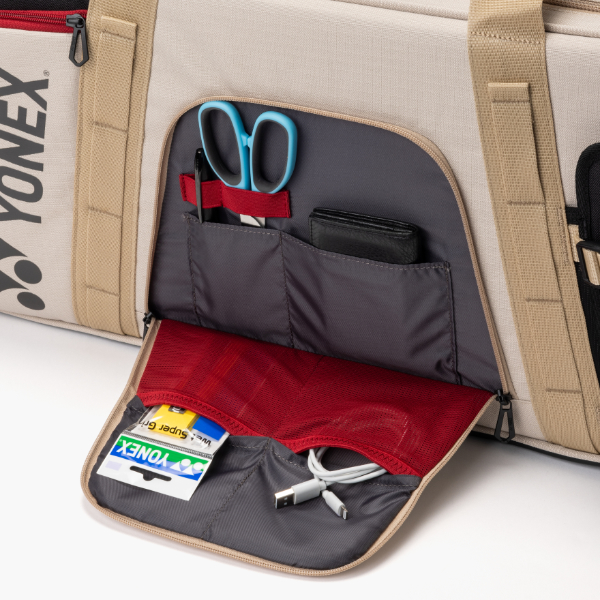 ■商品詳細情報 特徴VCOREシリーズのルビーレッド(338)カラーと連動デザインバッグ。整理整頓・コンパクト・縦置き・可変部屋仕切りで1~3部屋に分割・プロシリーズより少しコンパクトなサイズ・縦置き時に安定しやすい形状・可変部仕切りは収納物にあわせて調整可・小物収納は内部が細かく仕切られ、工具箱のようにテニスの必需品を収納可能 ■商品説明 商品名[ヨネックス バッグ ]トーナメントバッグ ギアロジックシリーズ BAG2621W メーカー名ヨネックス カラー(007)ブラック, (147)ベージュ サイズ75×20×30cm 素材ポリエステル 生産国ベトナム スト"> もっと見る