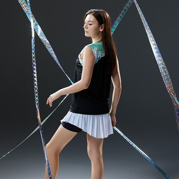 | 特徴 | 肩回りに薄手の軽量素材を使用。 シーズンテーマのグラフィックが特徴的なスリーブレスゲームシャツ。 ゲーム用(ITF/JTA)JSTA |