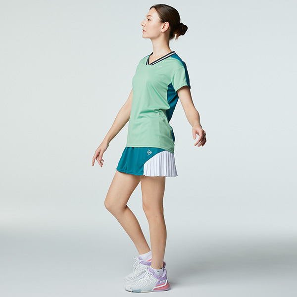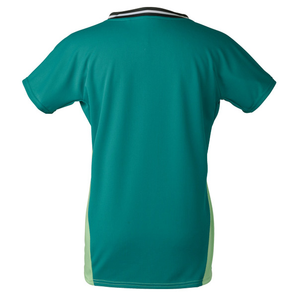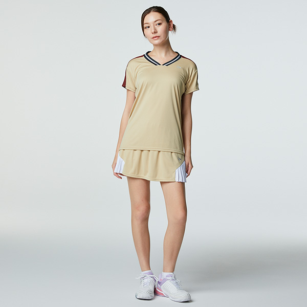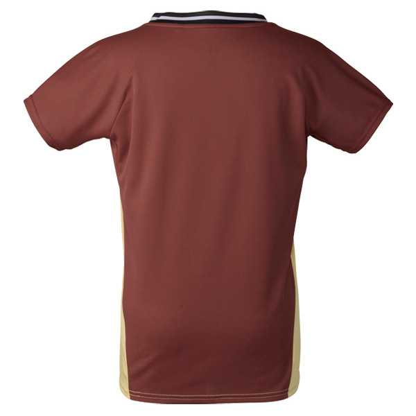 | 特徴 | 襟のVネック・デザインが特徴的。 背面に発汗時の肌離れに優れた素材を使用したゲームシャツ。 ゲーム用(ITF/JTA)JSTA |