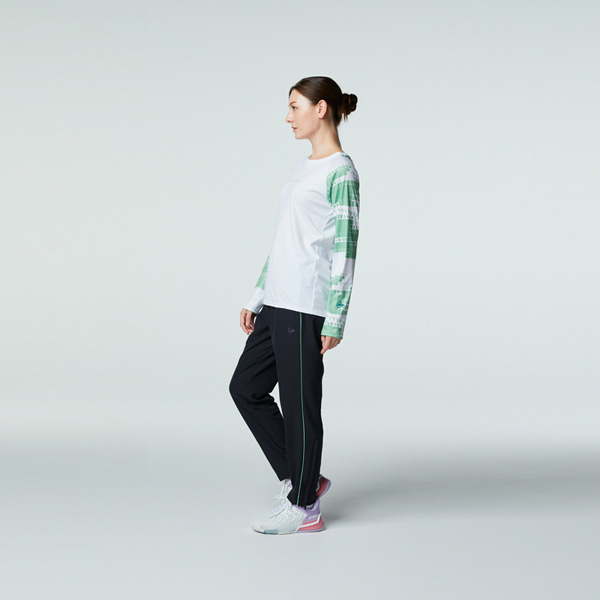 | 特徴 | 両サイドのラインがアクセント。 ストレッチ素材を使用したトラックパンツ。 |