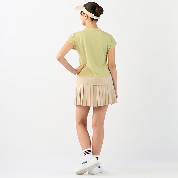 | 特徴 | 前裾と後身頃がプリーツデザインのスコートです。 座ってもシワになりにくく、サラッとした手触りで通気性も高いので夏のプレーにタリです。 |