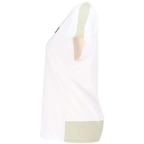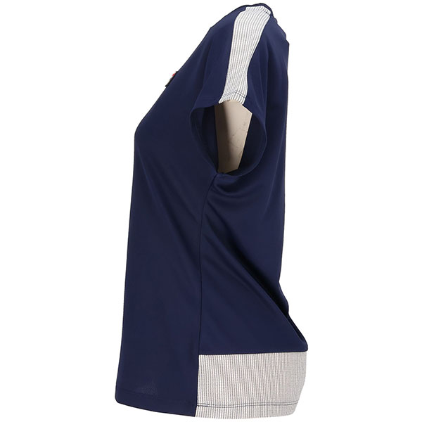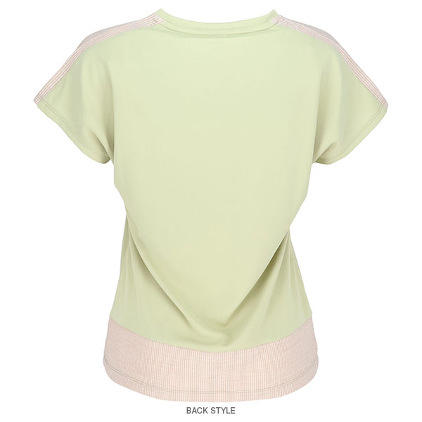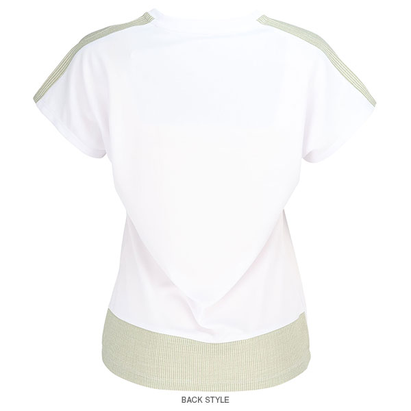 | 特徴 | 肩ヨークと後身頃の裾にキャンパスストライプを配した異素材使いがアクセントです。 ぜひ、スコートと組み合わせて着用ください。 |