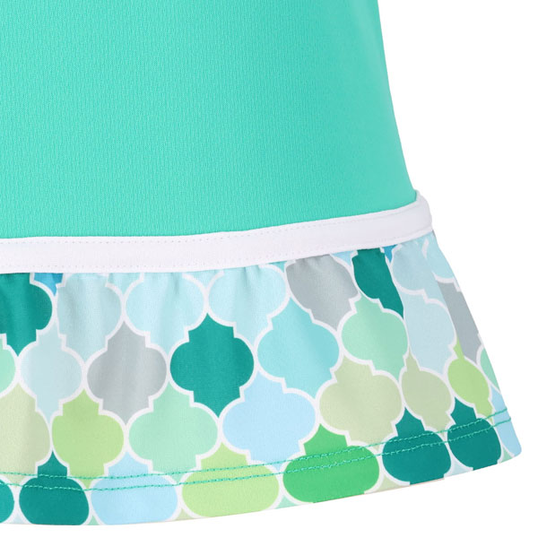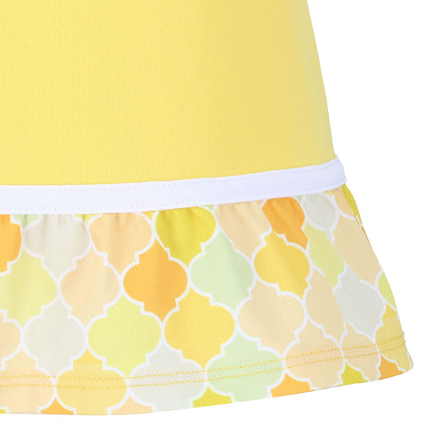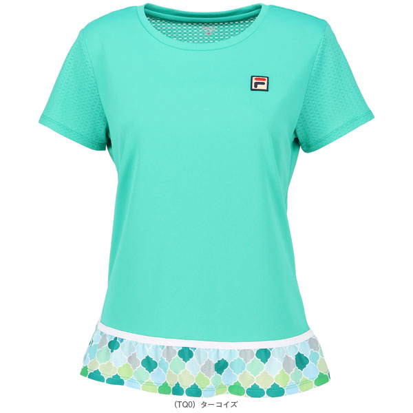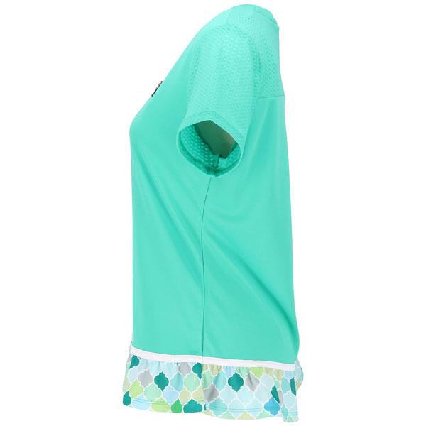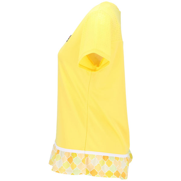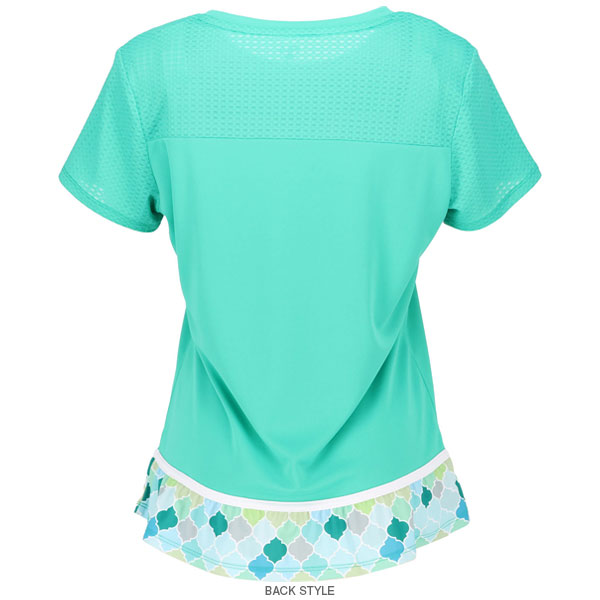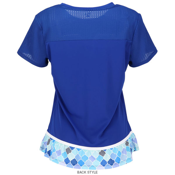 | 特徴 | ボディは着こなしやすい無地、裾は涼し気なプリントを可愛く配しています。 袖と背中のヨークがメッシュ素材で快適です。 同素材のスコートとのコーディネートがおすすめです。 |