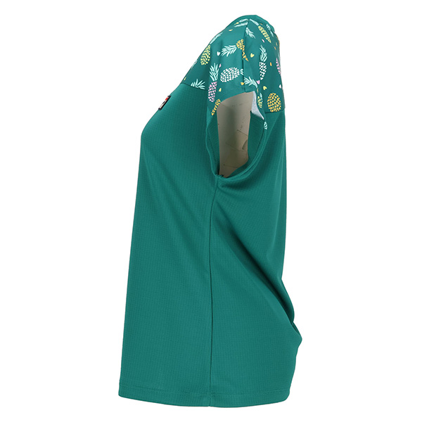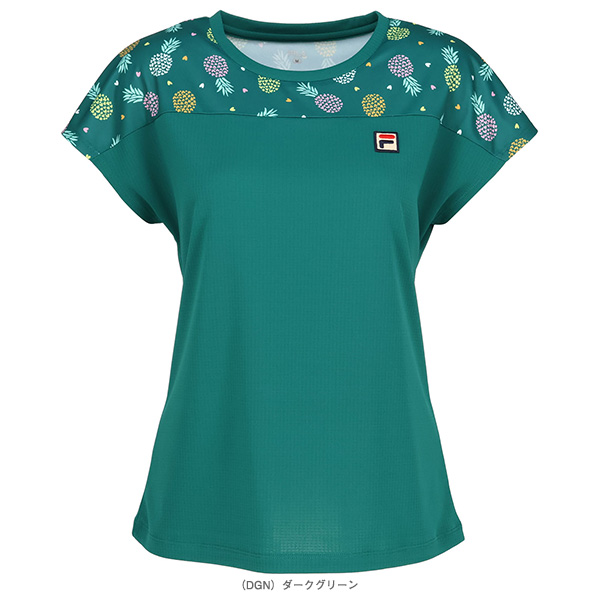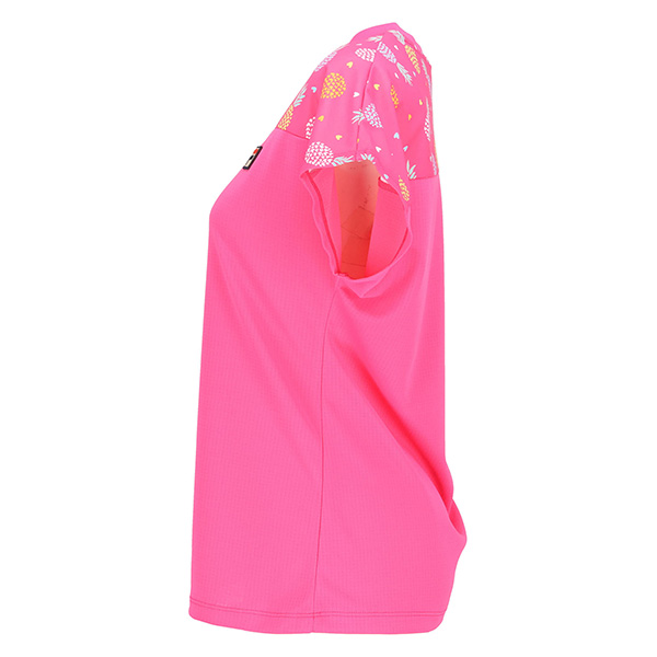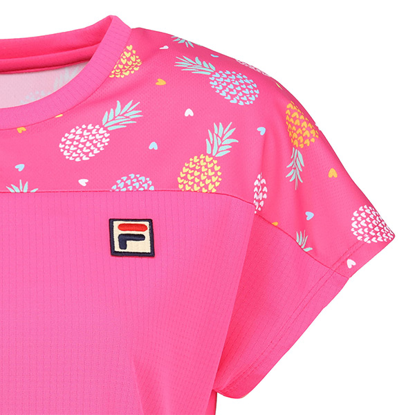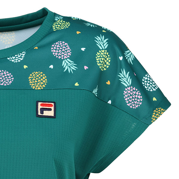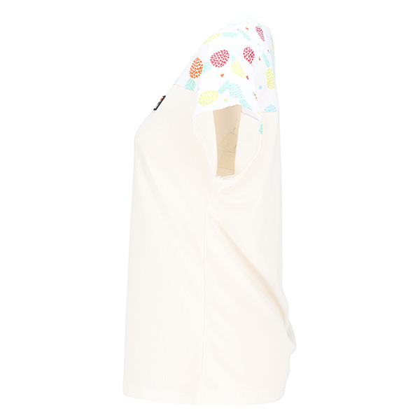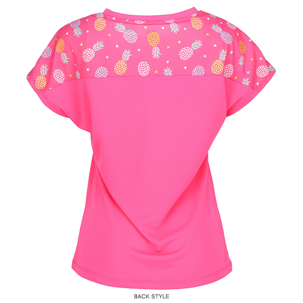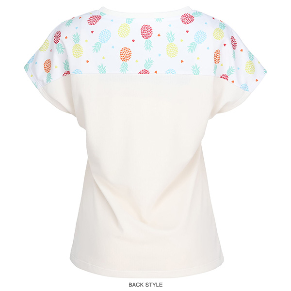 | 特徴 | リゾート地のイメージからパイナップルのポップなプリントをモチーフに楽しさを表現。 無地部分は【汗染み防止】素材です。 汗なんか気にせず、思いっきりテニスを楽しんでください。 |