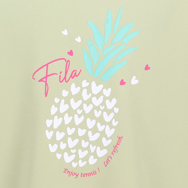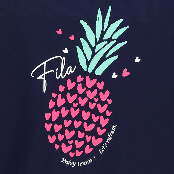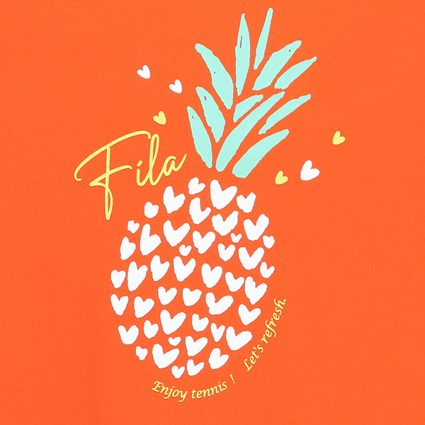 | 特徴 | リゾート地でもテニスを楽しみたい想いを込めたグラフィックTシャツは、パイナップルをモチーフにしました。 パイナップル総柄プリントとのコーディネートがおすすめです。 |
