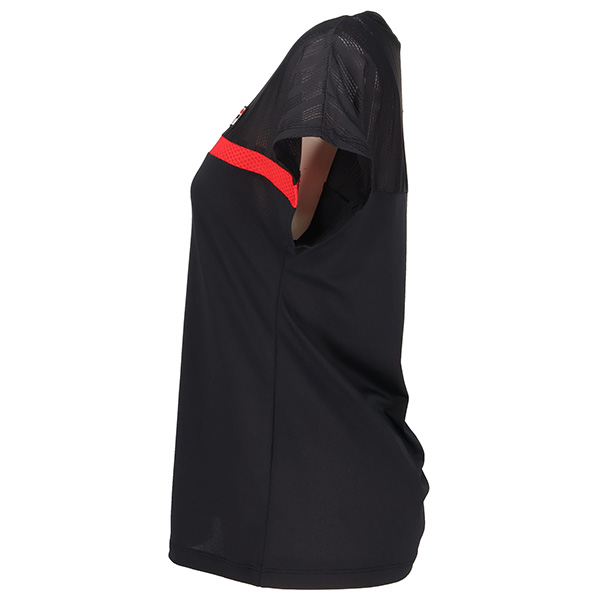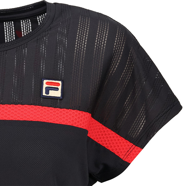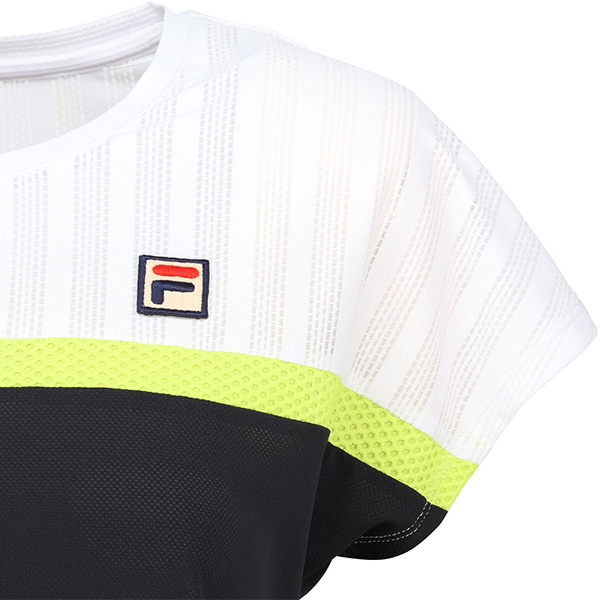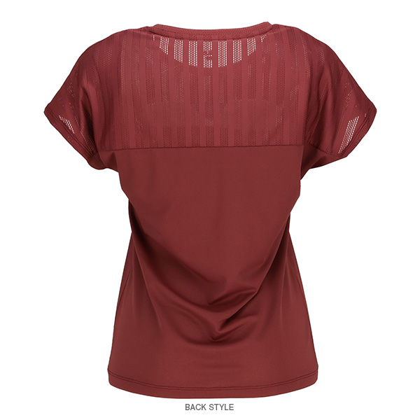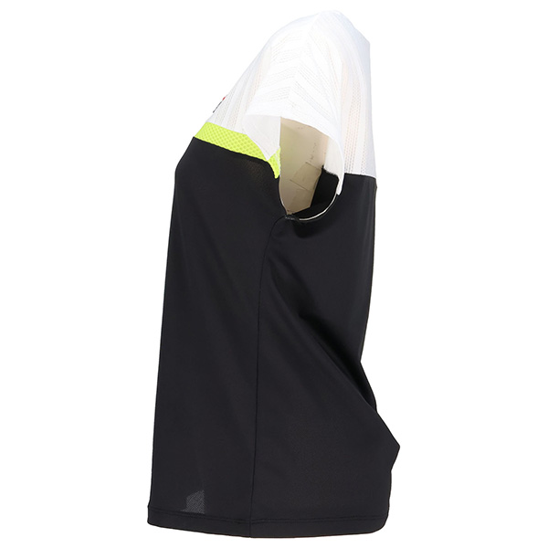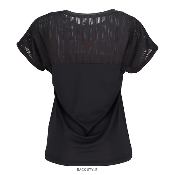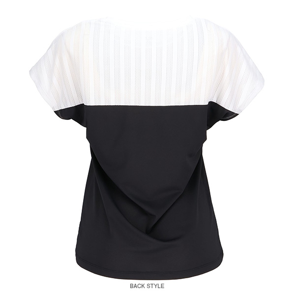 | 特徴 | 胸のラインを冴えたカラーでアクセント。 ラインより上はメッシュ素材、ラインより下はパイナップルメッシュ素材です。 涼やかな素材使いでサマーテニスを楽しんでください。 |