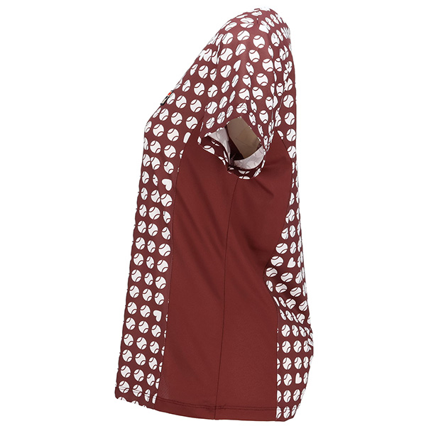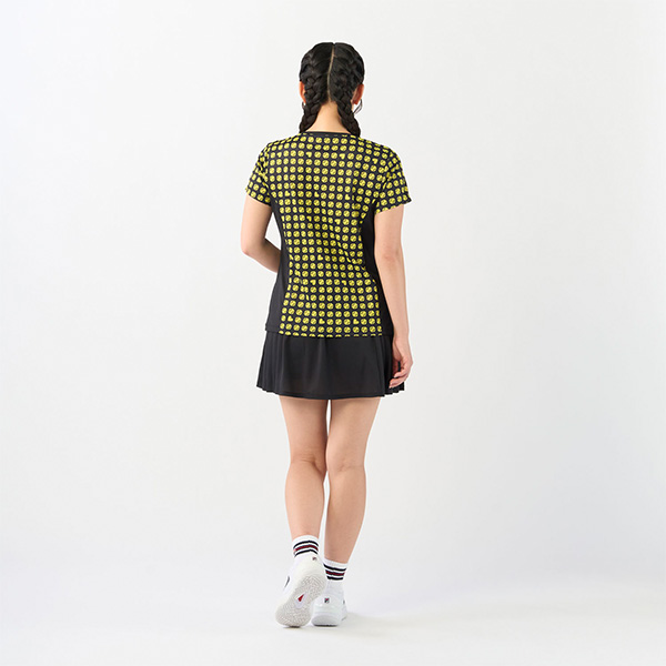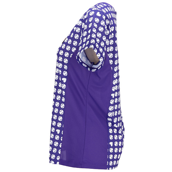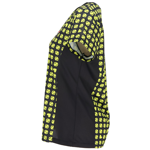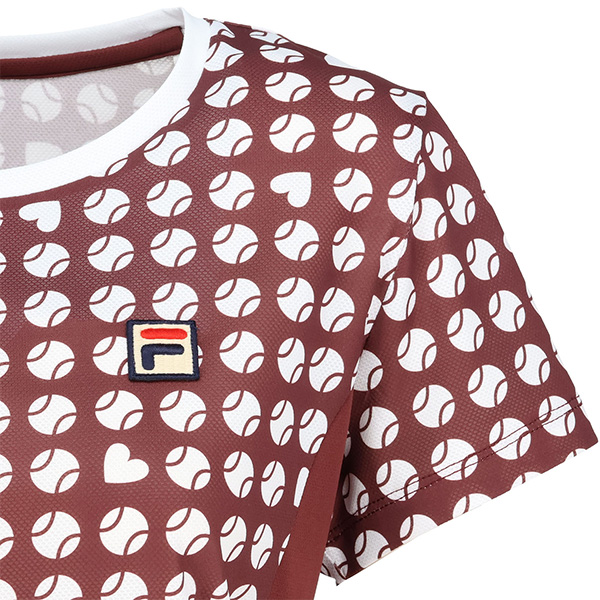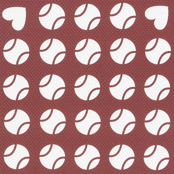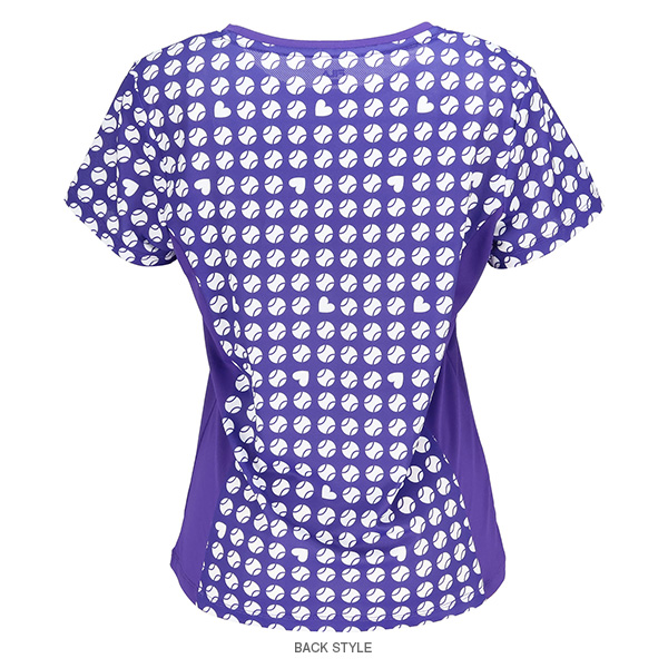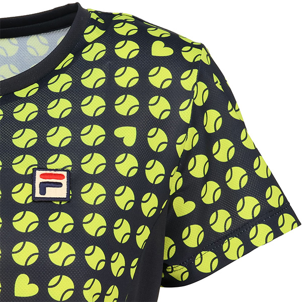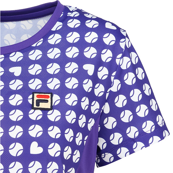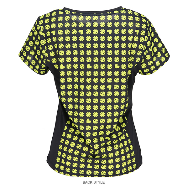 | 特徴 | 凹凸のあるストレッチの効いたメッシュ素材にテニスボールのモチーフを幾何柄風にアレンジしました。 ハートも隠れているので探してみてください。 軽量なシャツで涼やかな着心地です。 |