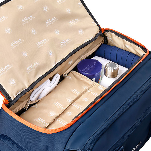 | テクノロジー | 【SMALL ACCESSORY POCKET】 小物類の収納ポケット 【RACKET COMPARTMENT】 テニスラケットが収納できるポケット 【LARGE ACCESSORY POCKETS】 ギアとアパレル等を収納できるポケット 【SHOE COMPARTMENT/BAG】 シューズを収納できるスペース |
