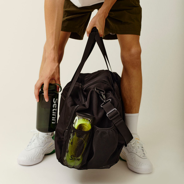 | 特徴 | 遠征や旅行に最適なジムバッグです。 外にはナルゲンボトルとテニスボール缶が入るポケットを搭載し、内側にマルチポケットを随所に配した仕様になっています。 ライニングのメッシュポケットは脱着可能で、モバイルやBluetoothイヤホンなどを収納できるポケットを搭載しています。 ※オリジナルデザインのナルゲンボトルがセットになったアイテムです。 ナルゲンボトルは新色のオリーブになりました。 |
