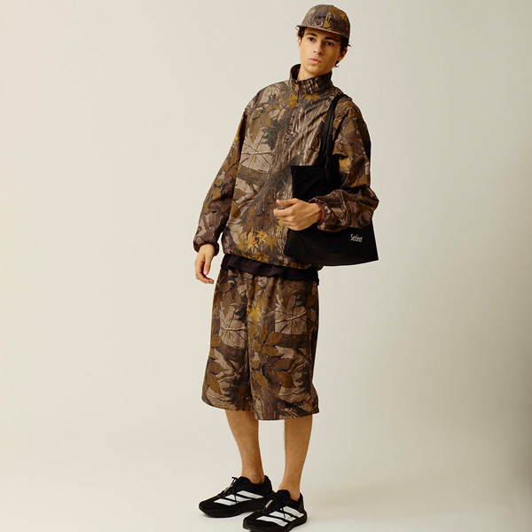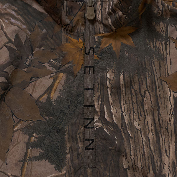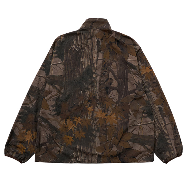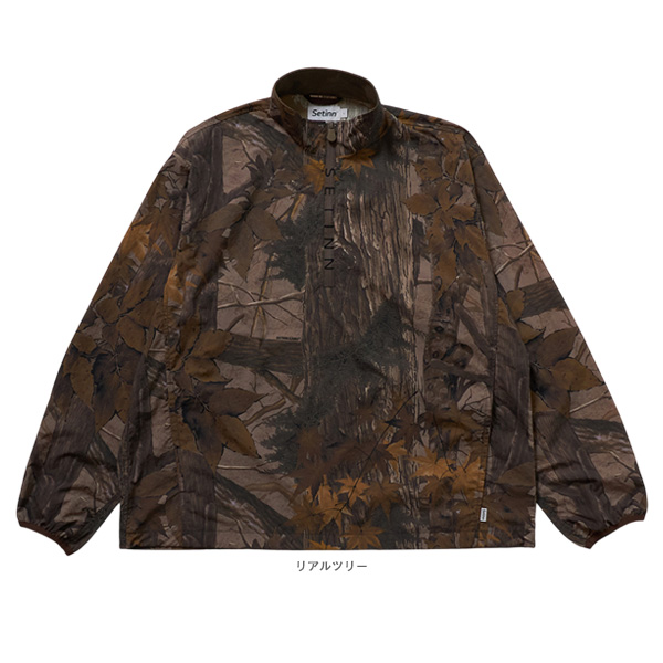 | 特徴 | ハーフジップタイプのナイロンジャケットです。 フロントテープにブランドネームをデザインし、裾にはドローコードが内蔵されています。 オリジナルのリアルツリーカモフラージュ柄とシンプルな無地2モデルの3デザインです。 オリジナルのリアルツリーカモはウッドラケット時代の材料となる品種を組み合わせて構成されています。 |